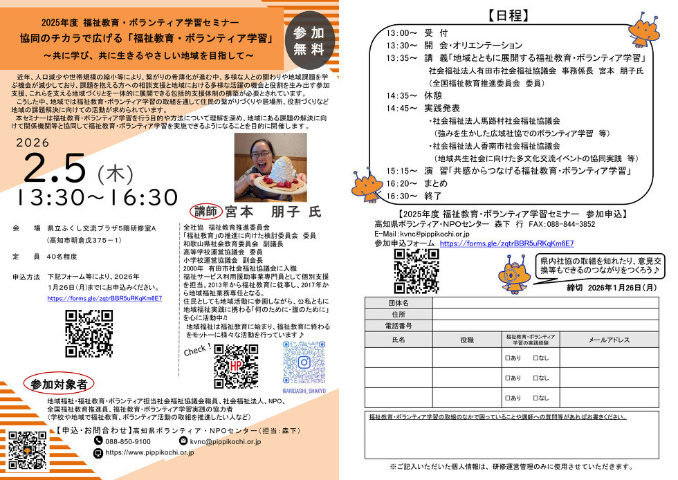 2025年度 福祉教育・ボランティア学習セミナー【2月5日(木)開催】