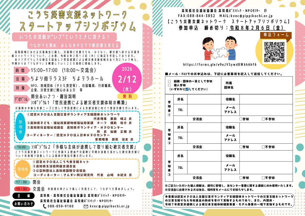 こうち災害支援ネットワーク スタートアップシンポジウム【2月12日(木)開催】