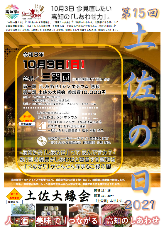 アンケートの調査の結果につきましては、すべて統計的に処理をしたうえで、集計値を10月3日(日)に三翠園にて開催される「第15回 土佐の日」イベントにて公表していく予定です。