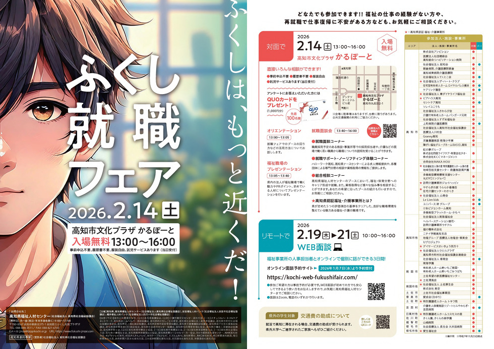 福祉分野のお仕事の魅力発信及び人材確保を目的とした、ふくし就職フェアwinterを 対面とWEBのハイブリッド形式で開催します!!